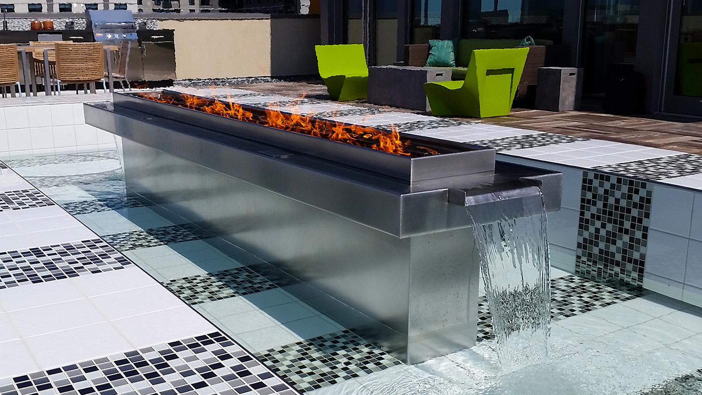 We bring two of nature’s contrasting elements together to design and fabricate truly unique water and fire features. A stainless steel Bradford fire feature is a dramatic presence in any space. Whether for warmth or for aesthetics, our fire features are the natural focus of any setting.