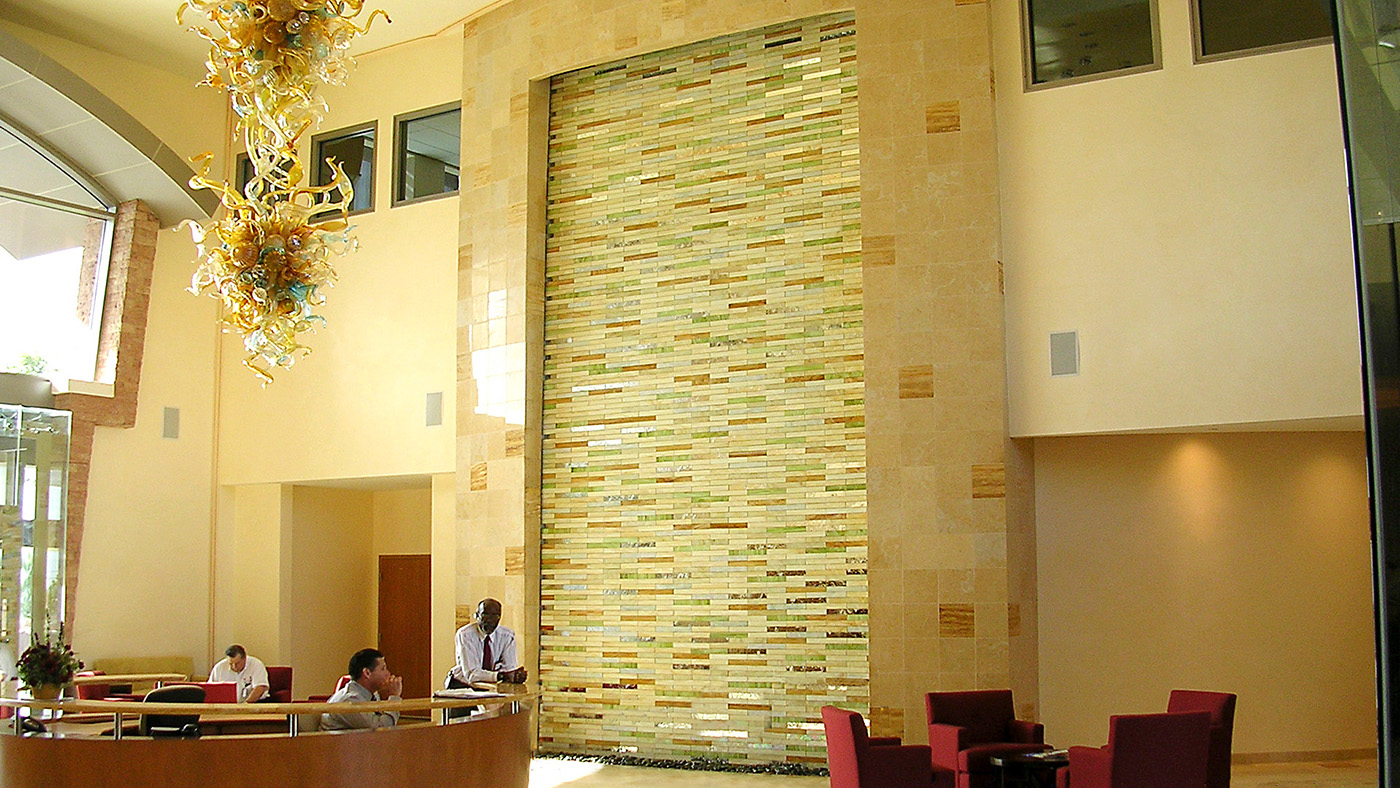 Bradford waterfalls and water walls are tranquil, elegant additions to any residential or commercial space. Enhance a lobby, courtyard, entryway, VIP suite, or luxury treatment area with a vibrant interplay of falling water, light, sound and reflective color. Choose from beautiful tile, marble, or granite, as falling water highlights the chosen surface material – creating an interplay of light reflection and movement.