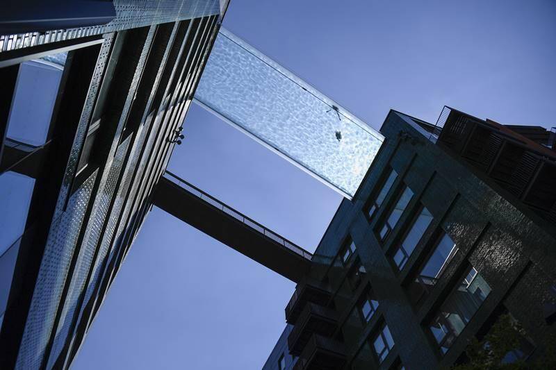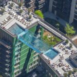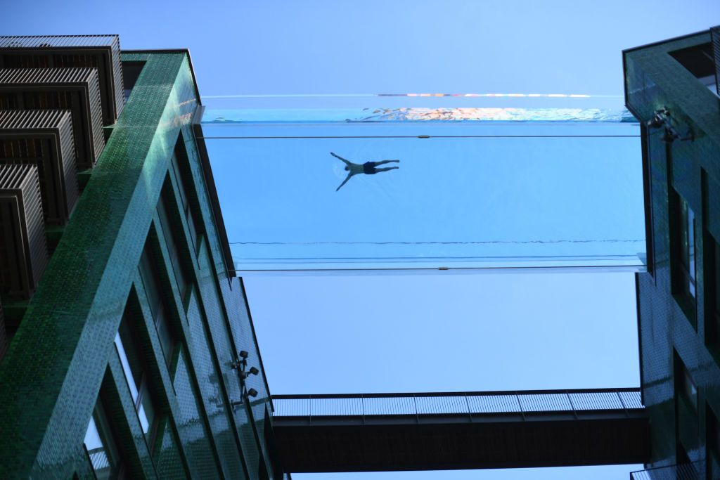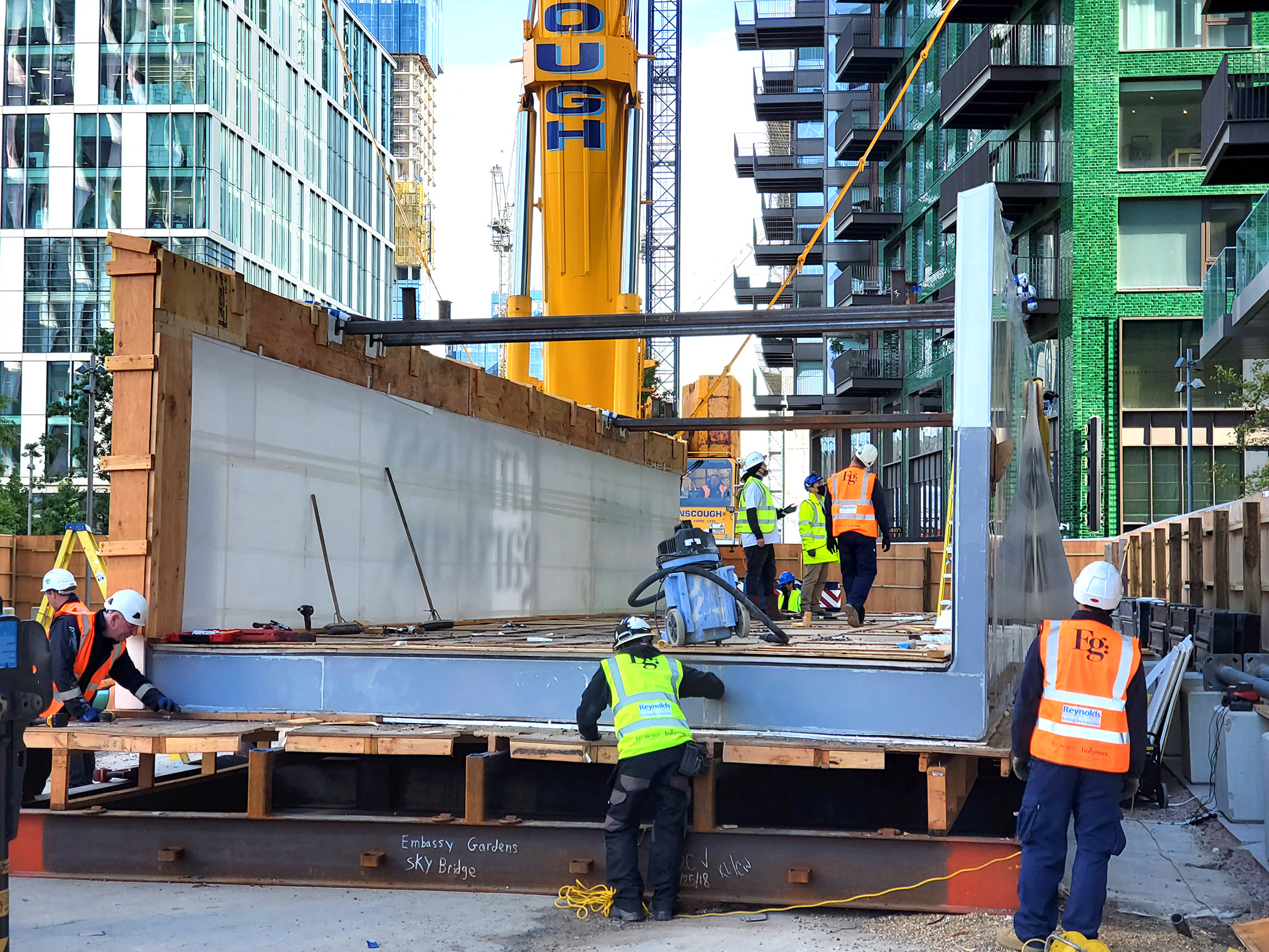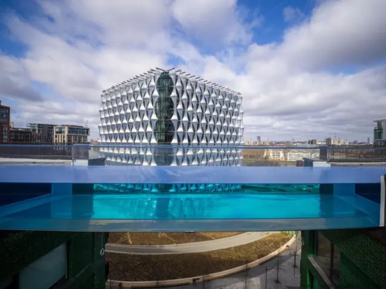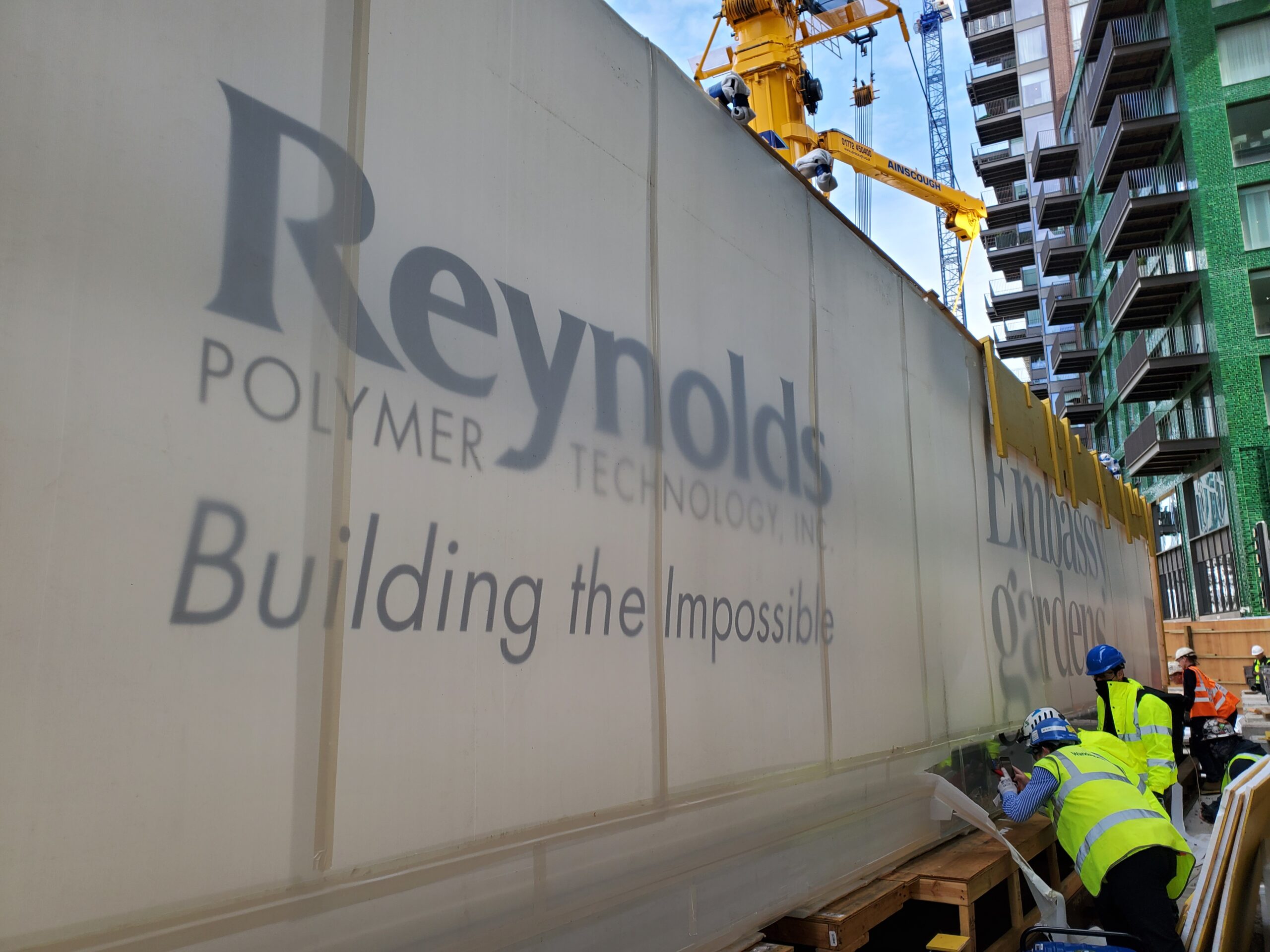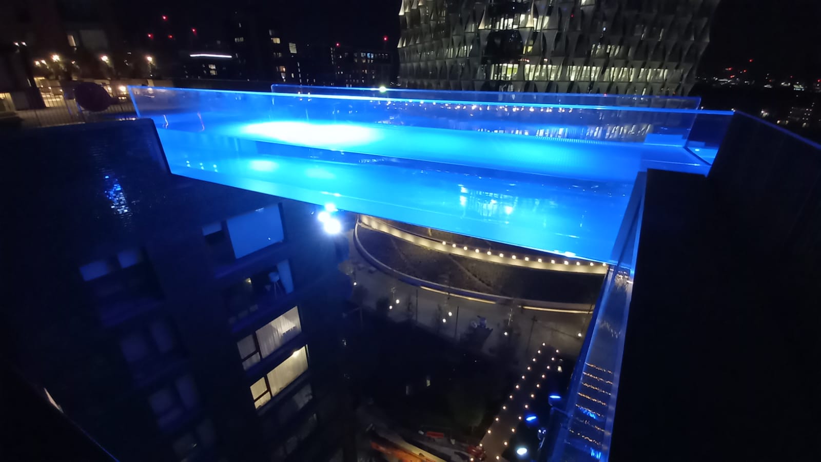 Bringing the Sky Pool to life has been years in the making. After four years of engineering, fabrication, and testing, the dream is a reality. Bradford partnered with international developers EcoWorld Ballymore Group and Colorado-based acrylic specialist, Reynolds Polymer to deliver the world’s first ‘floating pool’. Located in London next door to the US Embassy, the pool is suspended 115-feet in the air and spans an 82-foot distance between the two residential towers of Embassy Gardens.