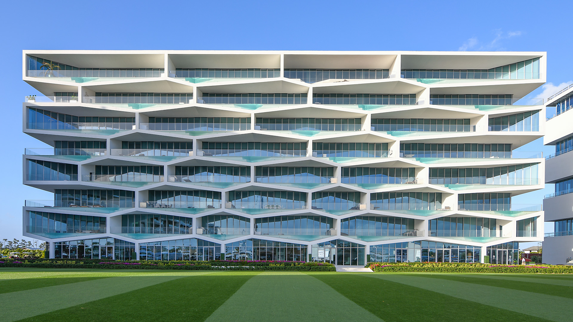 Rising to new heights in Albany, the Bahamas, the Honeycomb is an eight-story luxury residential paradise designed with in-suite private pools and balconies. To furnish every condo with a personal swimming pool, Albany Marina called on our aquatic experience and skilled team at Bradford for 34 unique shaped vessels on sunken balconies.